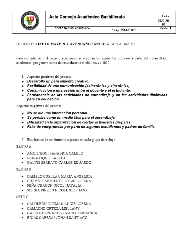 Acta Consejo Académico Bachillerato Fecha: