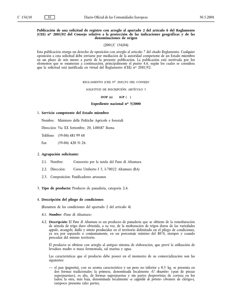 4.4. Prueba de origen: El origen del Pane di Altamura estÆ vinculado a la tradición campesina de la zona