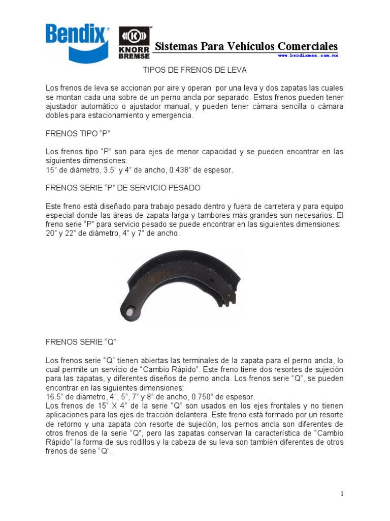 Los frenos tipo “P” son para ejes de menor capacidad y se pueden encontrar en las