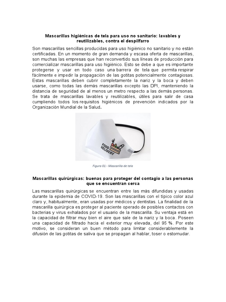 comercializar mascarillas para uso higiénico. Esto se debe a que es importante