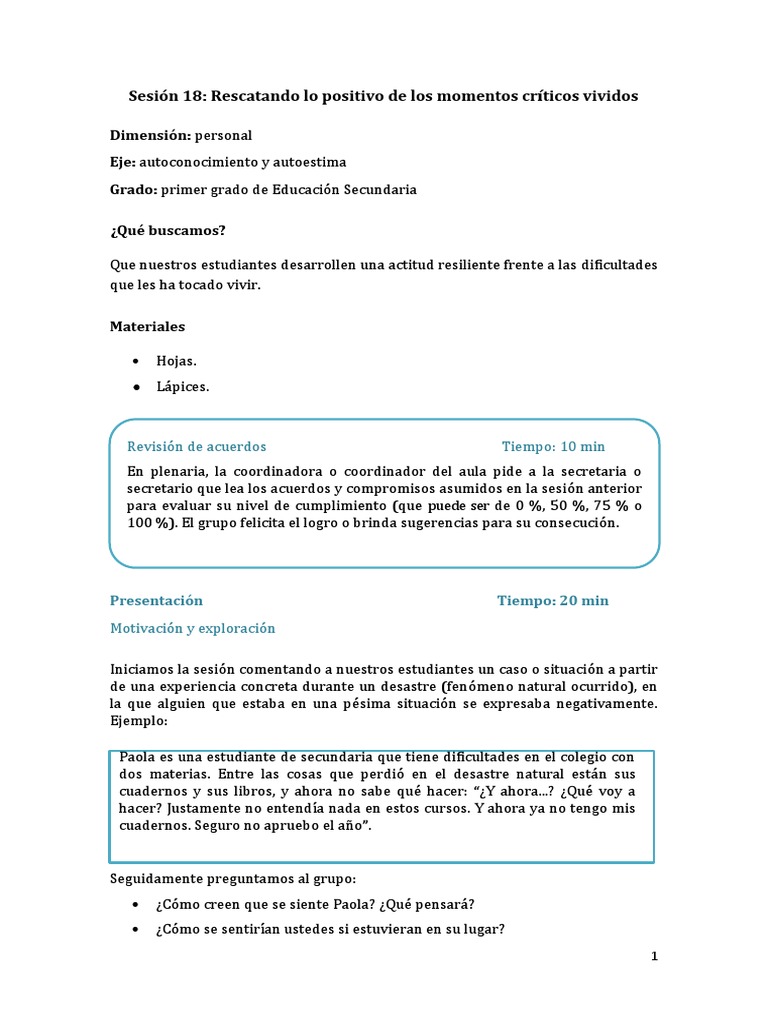 Sesión 18: Rescatando lo positivo de los momentos críticos vividos