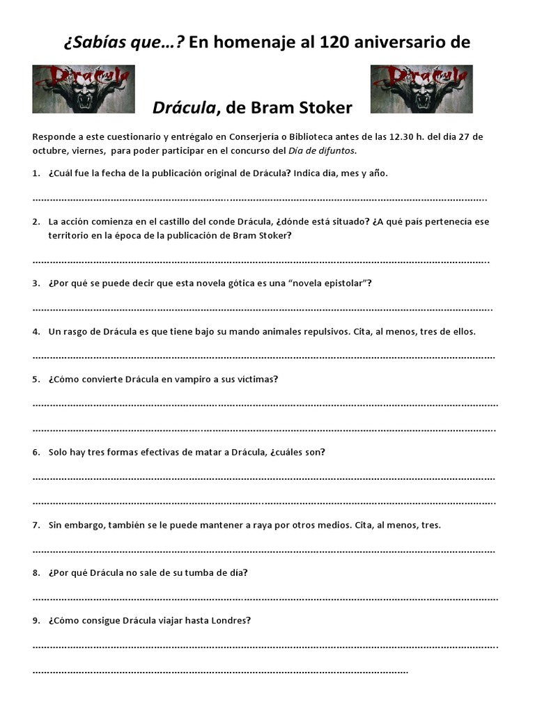 1. ¿Cuál fue la fecha de la publicación original de Drácula? Indica día, mes y año.