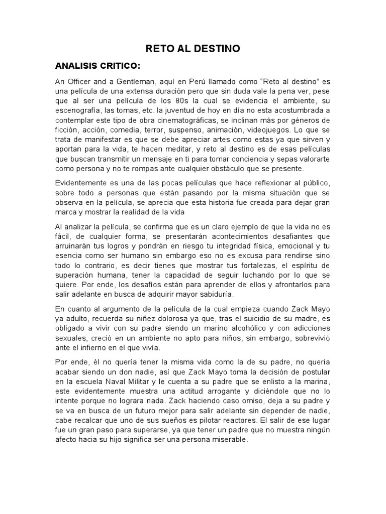 An Officer and a Gentleman, aquí en Perú llamado como “Reto al destino” es