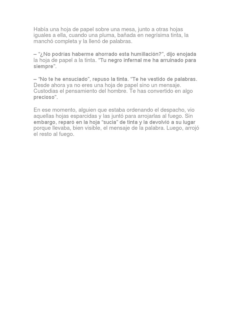Desde ahora ya no eres una hoja de papel sino un mensaje.