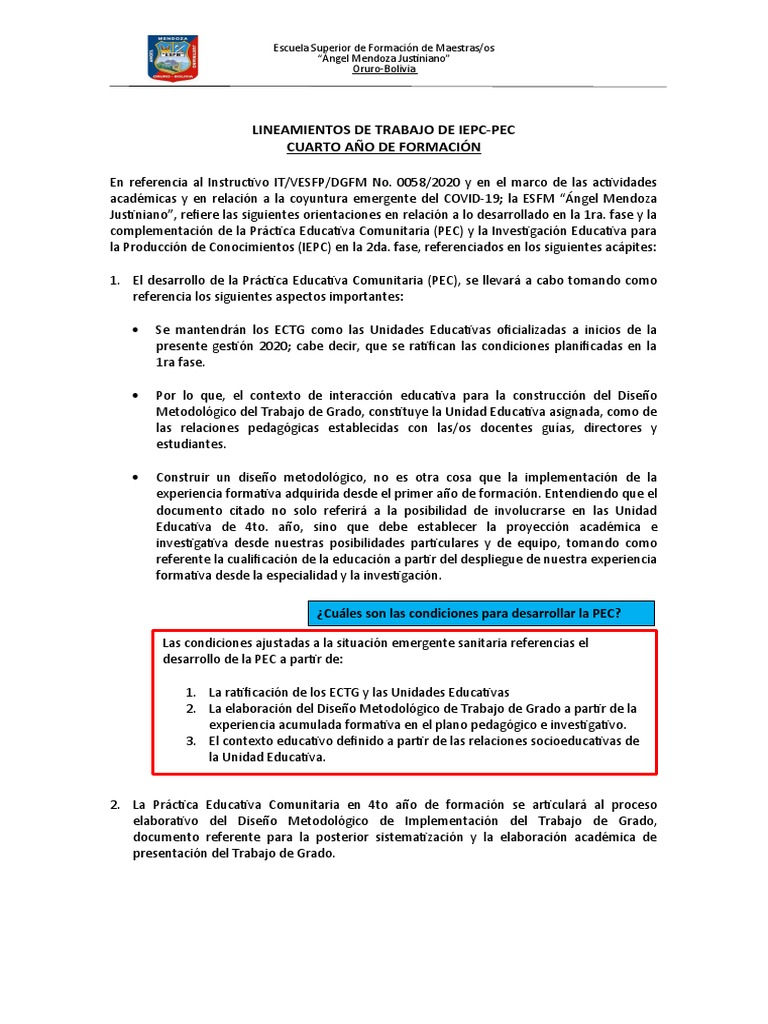 LINEAMIENTOS DE TRABAJO DE IEPC-PEC