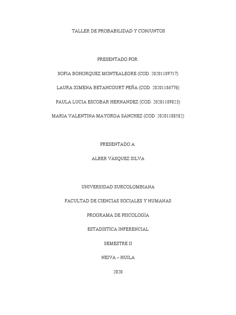 TALLER DE PROBABILIDAD Y CONJUNTOS