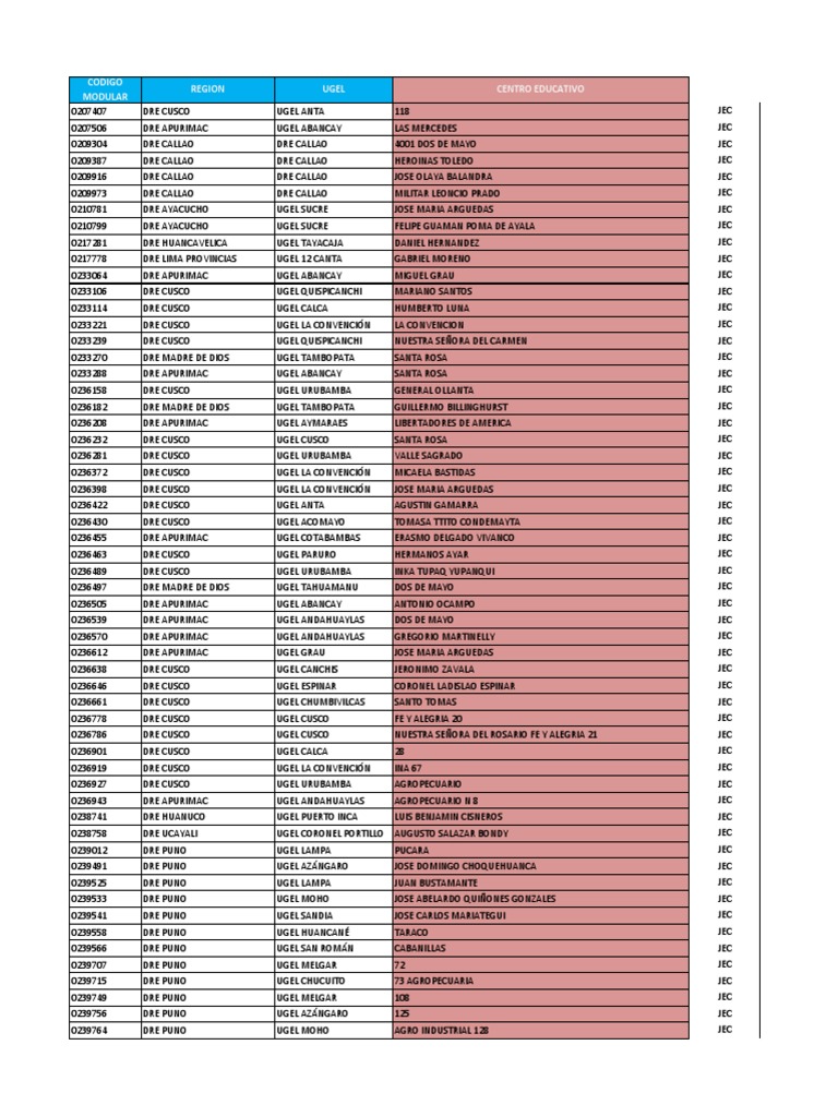 1398916 DRE CUSCO UGEL URUBAMBA 50575 LA SALLE JEC