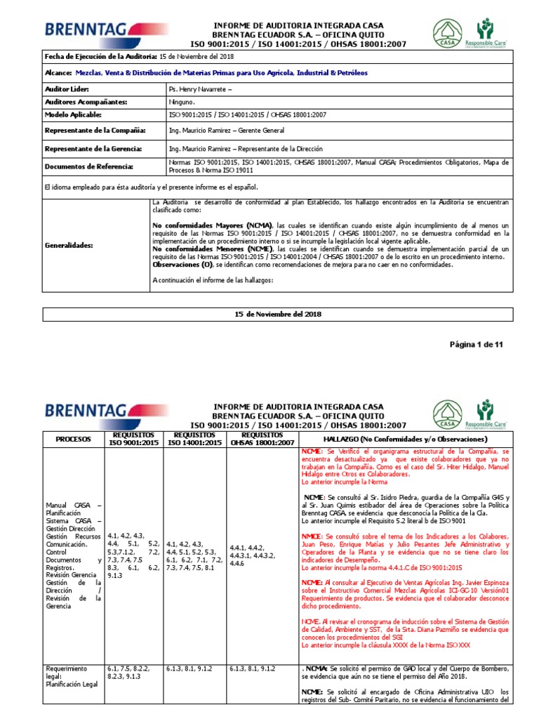 Modelo Aplicable: ISO 9001:2015 / ISO 14001:2015 / OHSAS 18001:2007