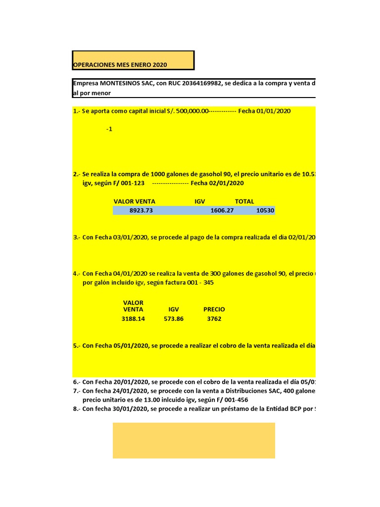1.- Se aporta como capital inicial S/. 500,000.00------------- Fecha 01/01/2020