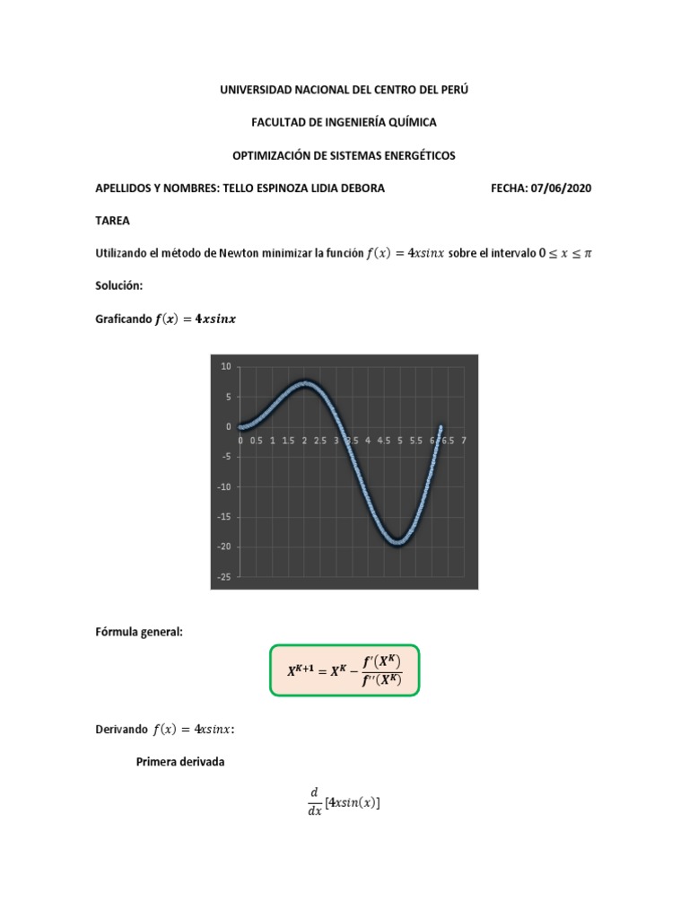 Utilizando el método de Newton minimizar la función 𝑓 (𝑥) = 4𝑥𝑠𝑖𝑛𝑥 sobre el intervalo 0 ≤ 𝑥 ≤ 𝜋