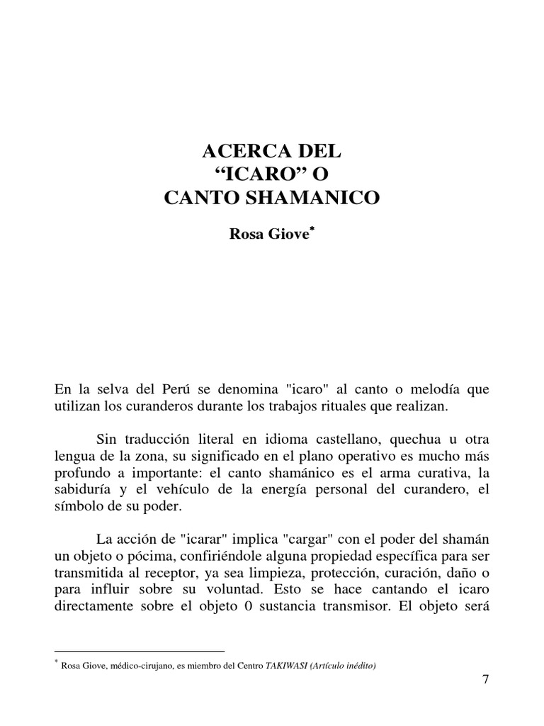 Icaro recibido en rituales de Ayahuasca