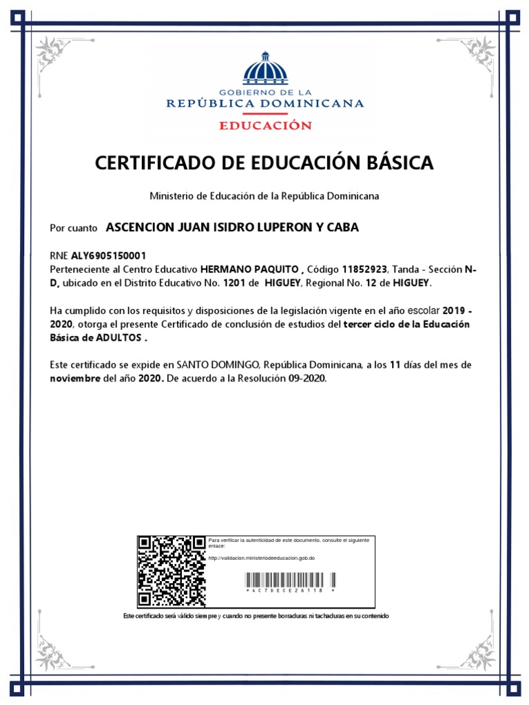CERTIFICADO DE EDUCACIÓN BÁSICA