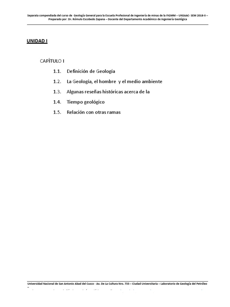 Separata compendiada del curso de Geología General para la Escuela Profesional de Ingeniería de minas de la FIGMM – UNSAAC- SEM 2018-II –