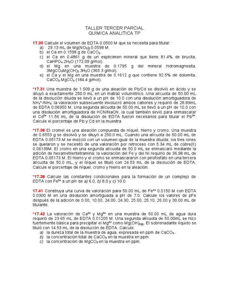 17.20 Calcule el volumen de EDTA 0.0500 M que se necesita para titular: