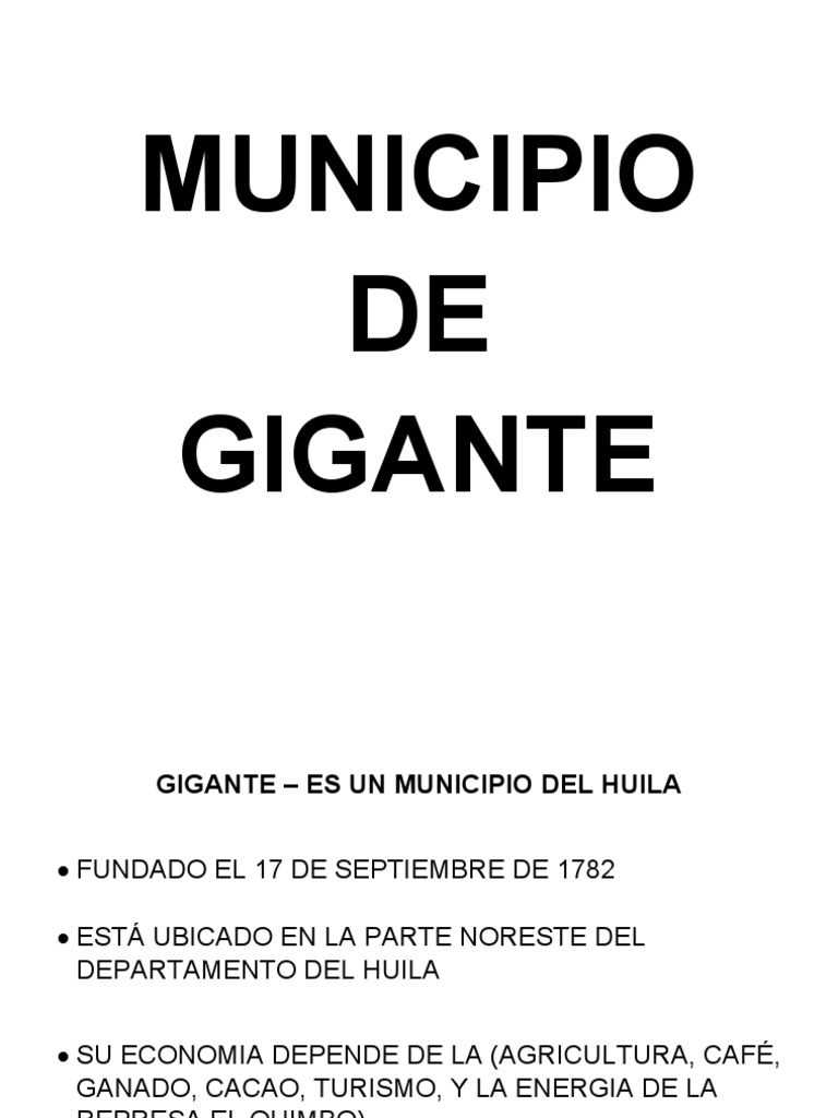 GIGANTE – ES UN MUNICIPIO DEL HUILA
