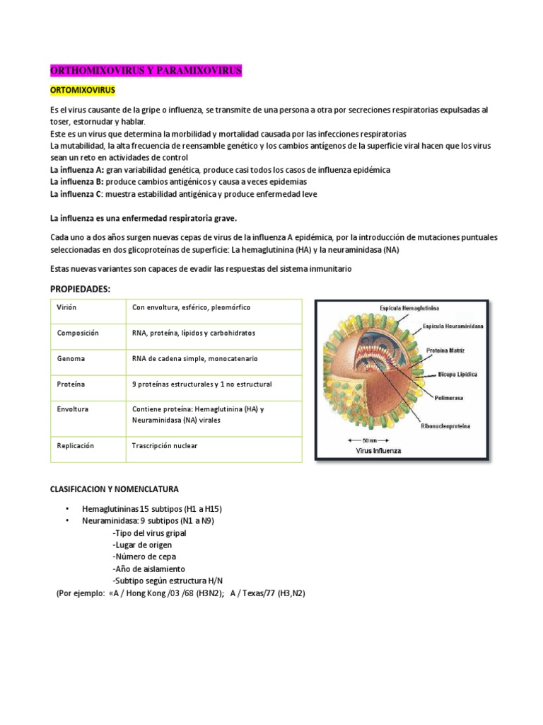Es el virus causante de la gripe o influenza, se transmite de una persona a otra por secreciones respiratorias expulsadas al