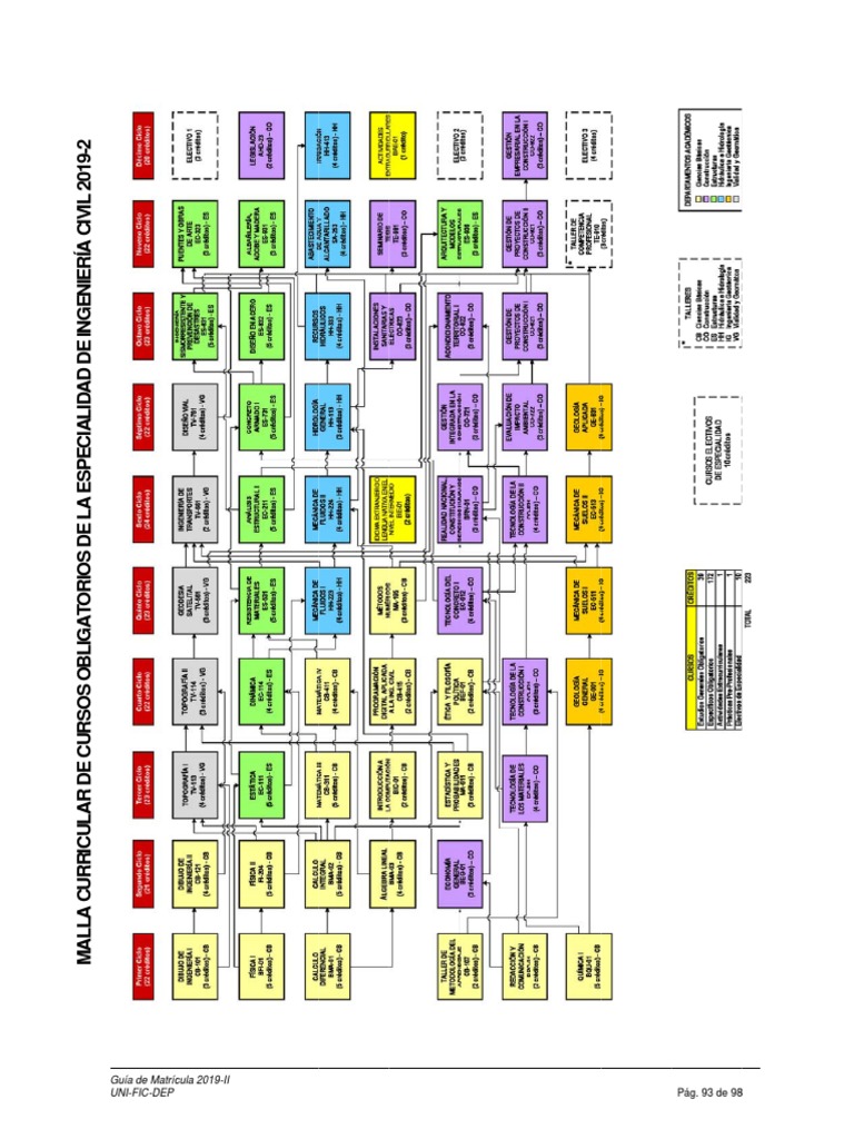 MALLA CURRICULAR DE CURSOS OBLIGATORIOS DE LA ESPECIALIDAD DE INGENIERÍA CIVIL 2019-2