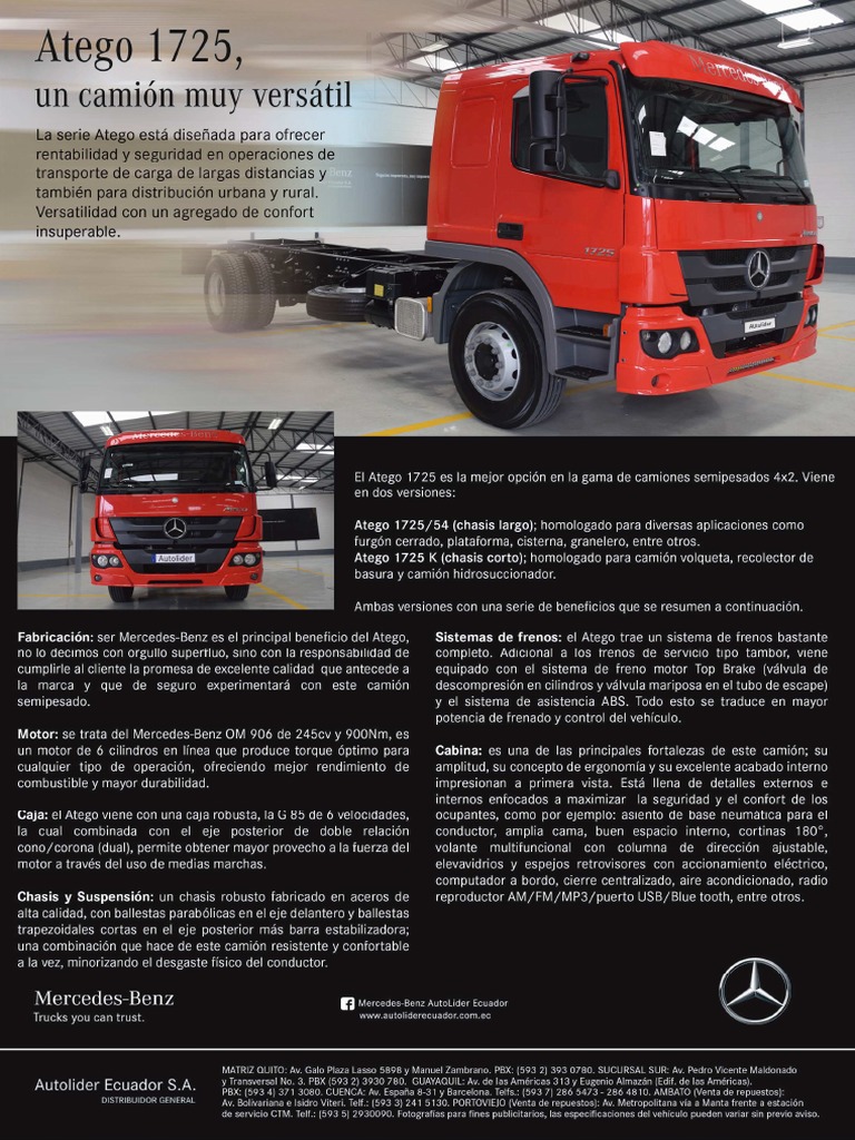 Mercedes-Benz Atego 1725 Modelo: Camión semipesado 4x2 Versiones: Atego 1725/54 (Chasis largo) - Atego 1725 K (Chasis