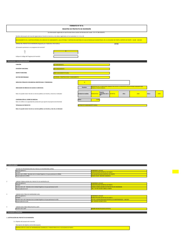 MEJORAMIENTO DE LA GESTION INTEGRAL DEL SERVICIO DE SANEAMIENTO, AGUA POTABLE Y DISPOSICION SANITARIA DE AGUAS RESIDUALES MUNICIPALES, DE LA LOCALIDAD DE PONTO, DISTRITO DE PONTO - HUARI - ANCASH