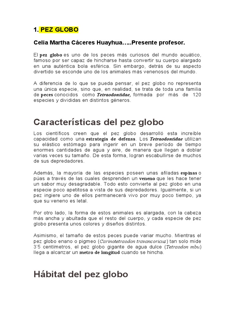 Características del pez globo