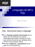 Structured Query Language: Basado en álgebra y cálculo relacional.