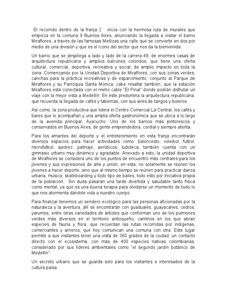 El recorrido dentro de la franja 2 inicia con la hermosa ruta de murales que