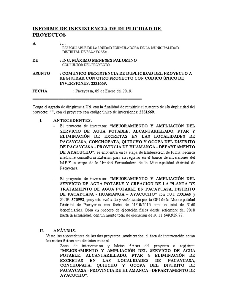 INFORME DE INEXISTENCIA DE DUPLICIDAD DE