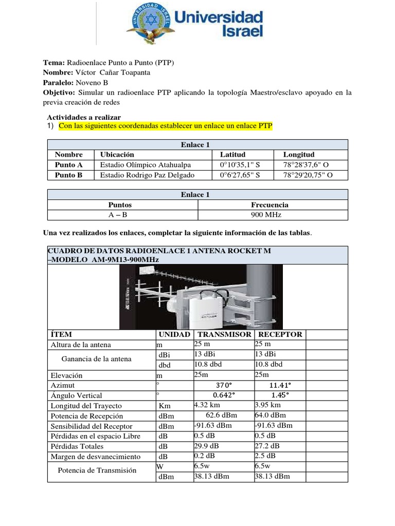 1) Con las siguientes coordenadas establecer un enlace un enlace PTP