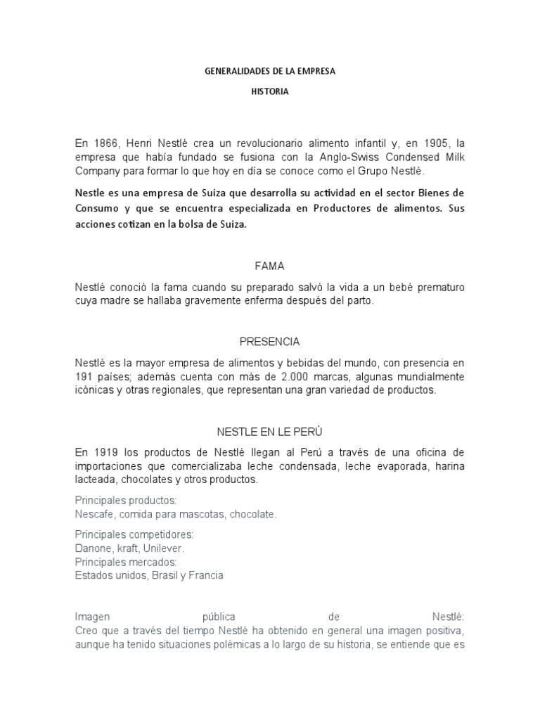 Creo que a través del tiempo Nestlé ha obtenido en general una imagen positiva,