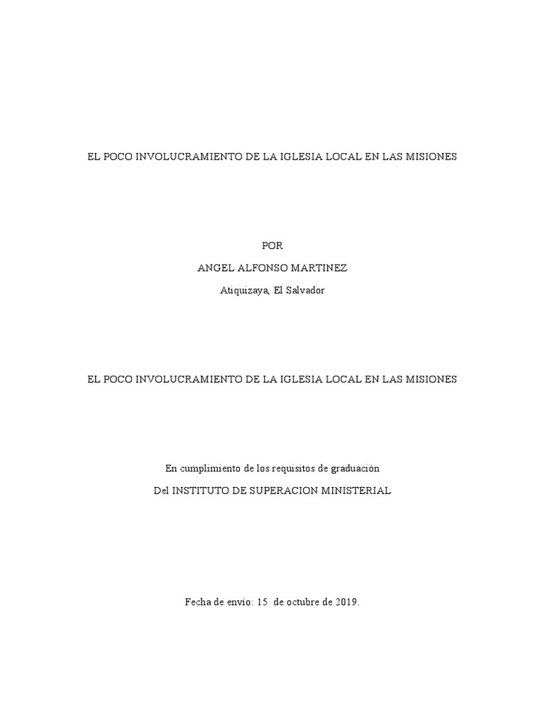 de la obra a nivel local, porque no se desarrolla un trabajo misionero interno que a su