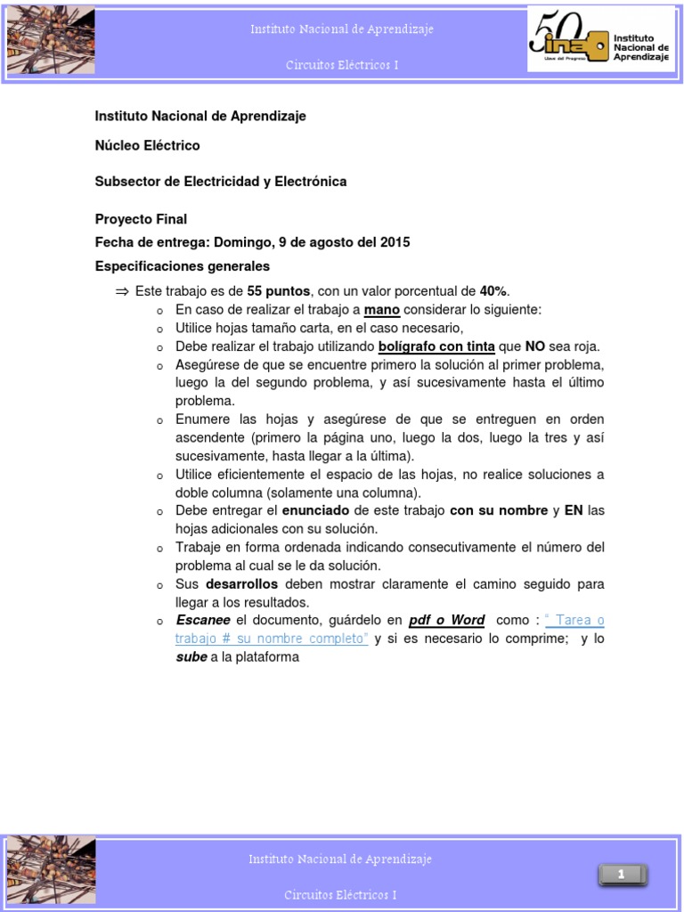 o En caso de realizar el trabajo a mano considerar lo siguiente: