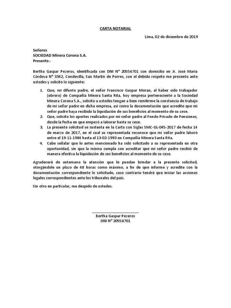 CARTA NOTARIAL