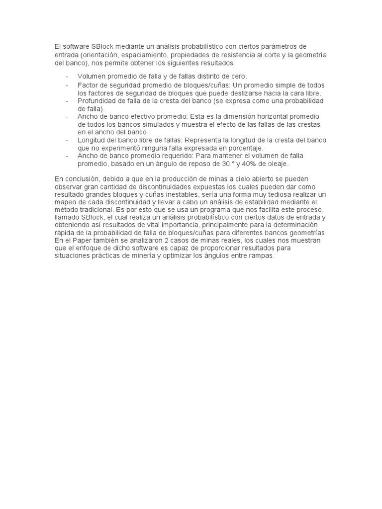 llamado SBlock, el cual realiza un análisis probabilístico con ciertos datos de entrada y