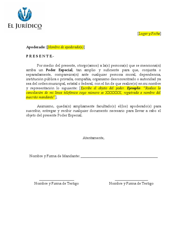 y representación lo siguiente: [Escribe el objeto del poder. Ejemplo: “Realice la