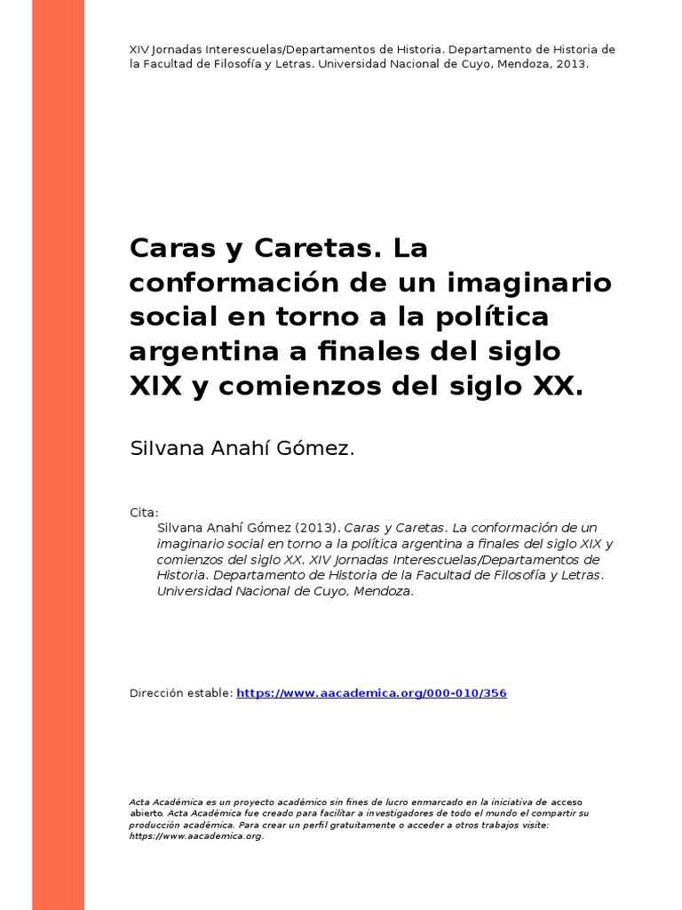 Silvana Anahí Gómez (2013). Caras y Caretas. La conformación de un