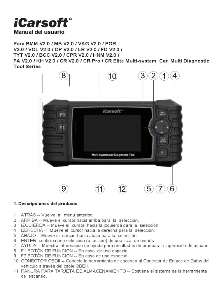 1) iCarsoft Multi-system Car Diagnostic Tool V2.0 Series puede hacer lecturas completas y