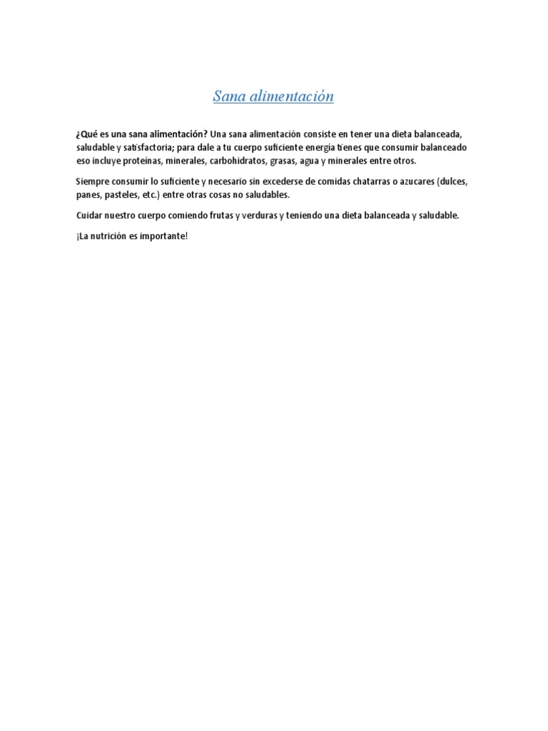 ¿Qué es una sana alimentación? Una sana alimentación consiste en tener una dieta balanceada,