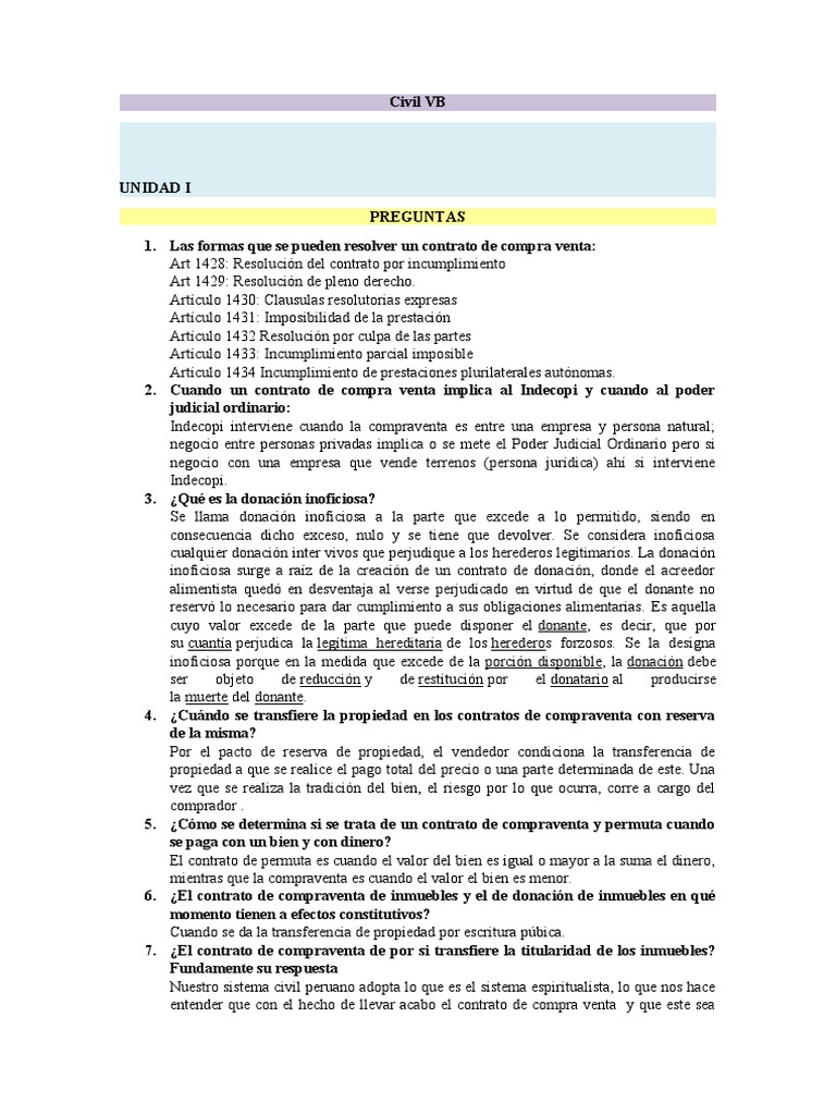 1. Las formas que se pueden resolver un contrato de compra venta:
