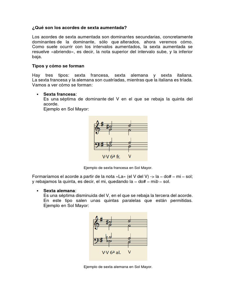 Como vemos en los ejemplos, en los tres tipos de acordes de sexta aumentada,