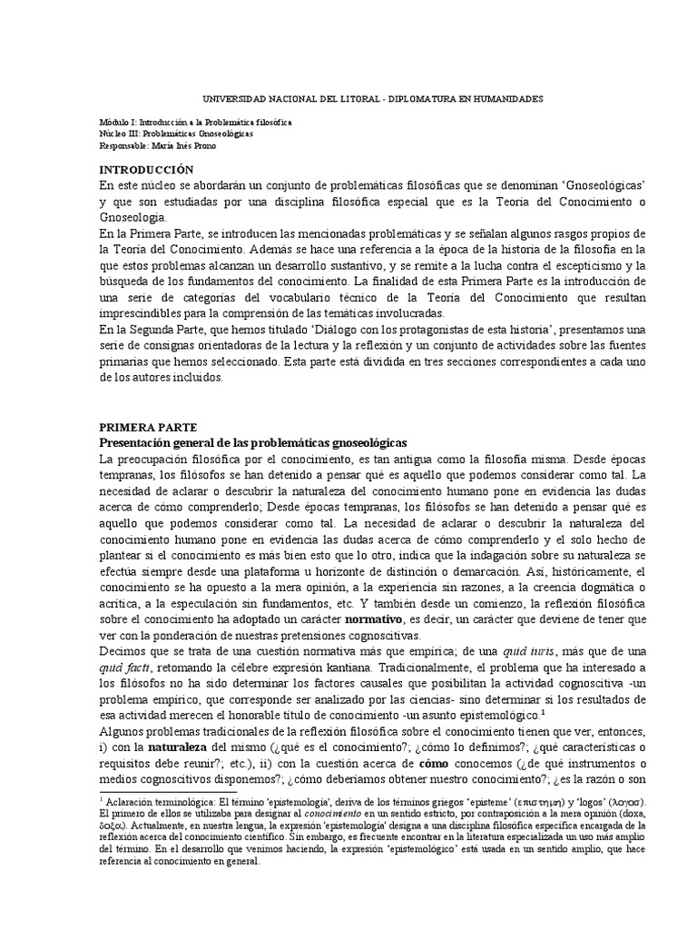 Núcleo III: Problemáticas Gnoseológicas