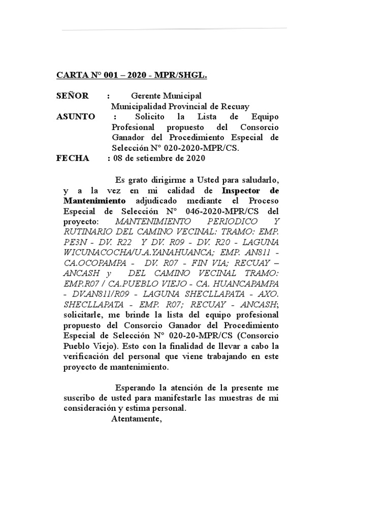 CARTA N° 001 – 2020 - MPR/SHGL.