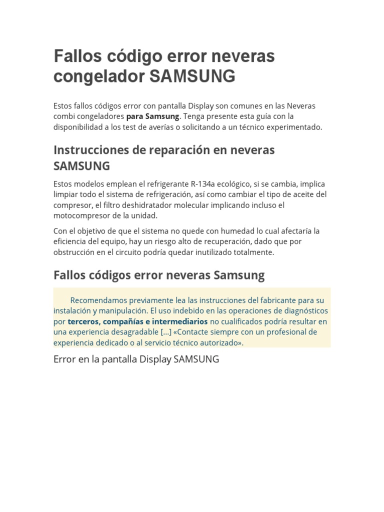 Fallos códigos error neveras Samsung
