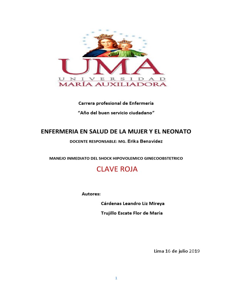 materna y perinatal; la clave roja son protocolos para el manejo inmediato que