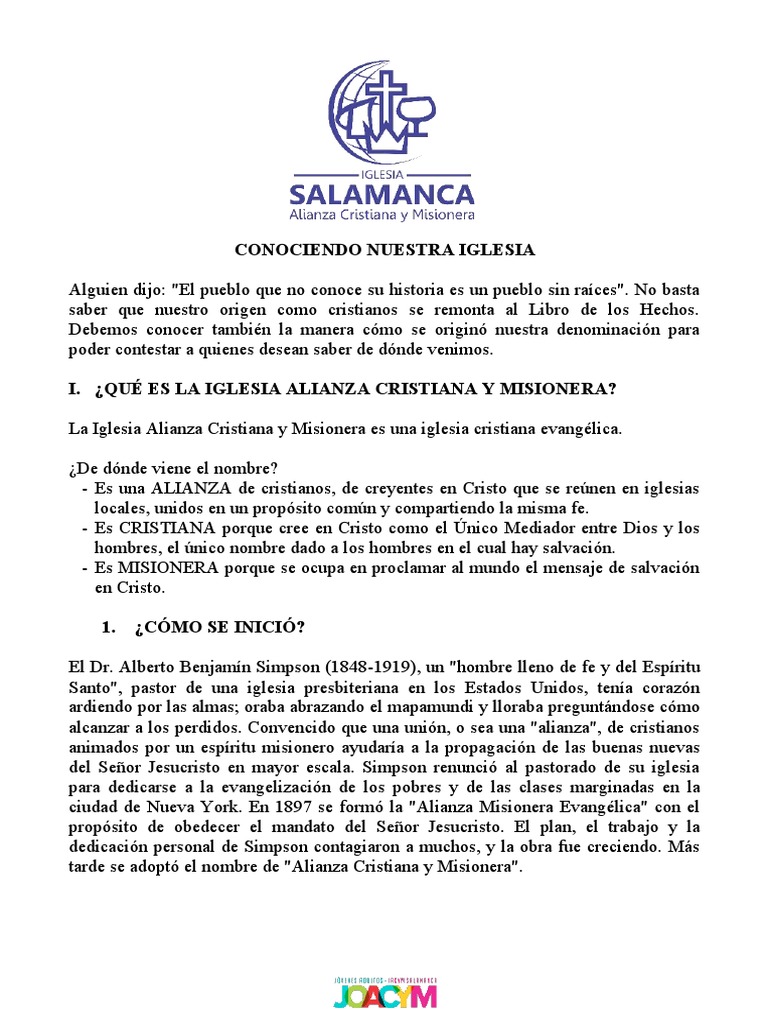 I. ¿QUÉ ES LA IGLESIA ALIANZA CRISTIANA Y MISIONERA?