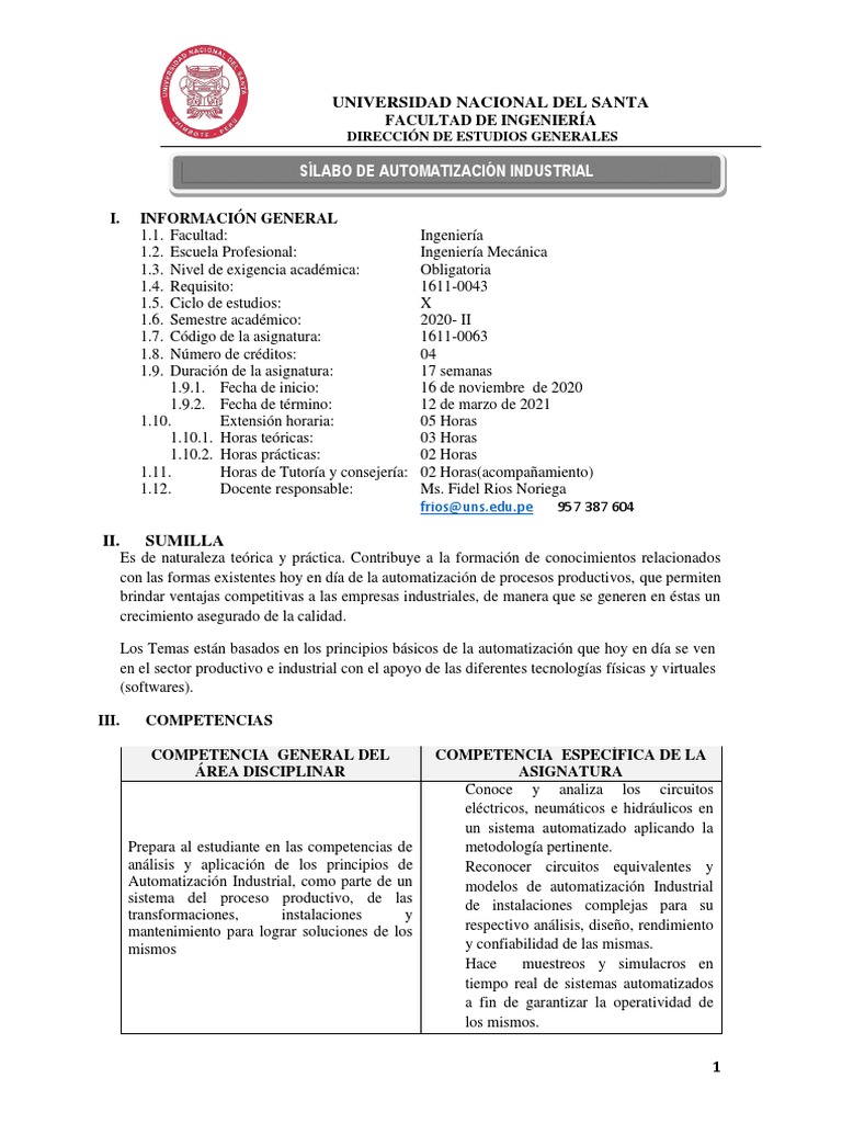 SÍLABO DE AUTOMATIZACIÓN INDUSTRIAL