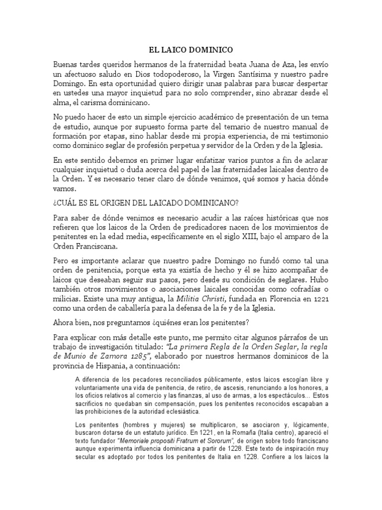 ¿CUÁL ES EL ORIGEN DEL LAICADO DOMINICANO?