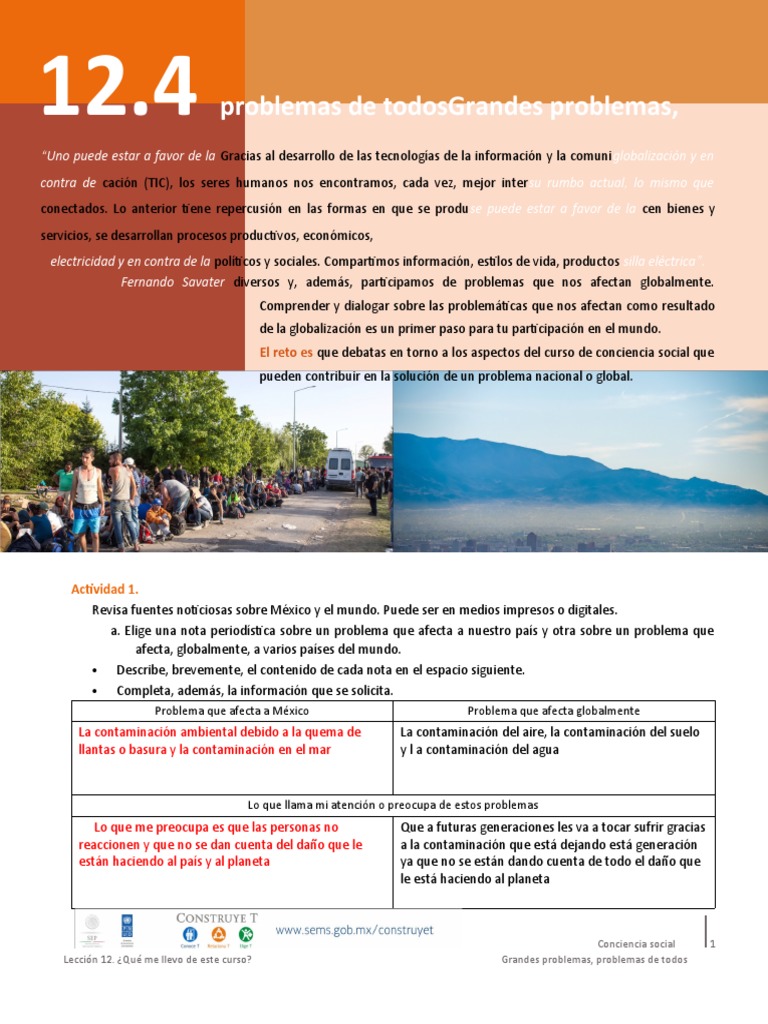 curso de conciencia social para resolver problemas nacionales y globales. Es importante darse cuenta del