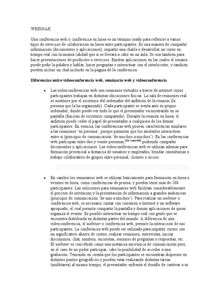 participantes. En esencia, las conferencias web poseen características similares