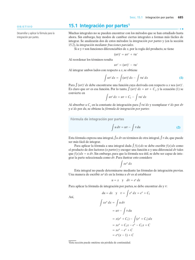 y u!dx por du, se obtiene la fórmula de integración por partes: