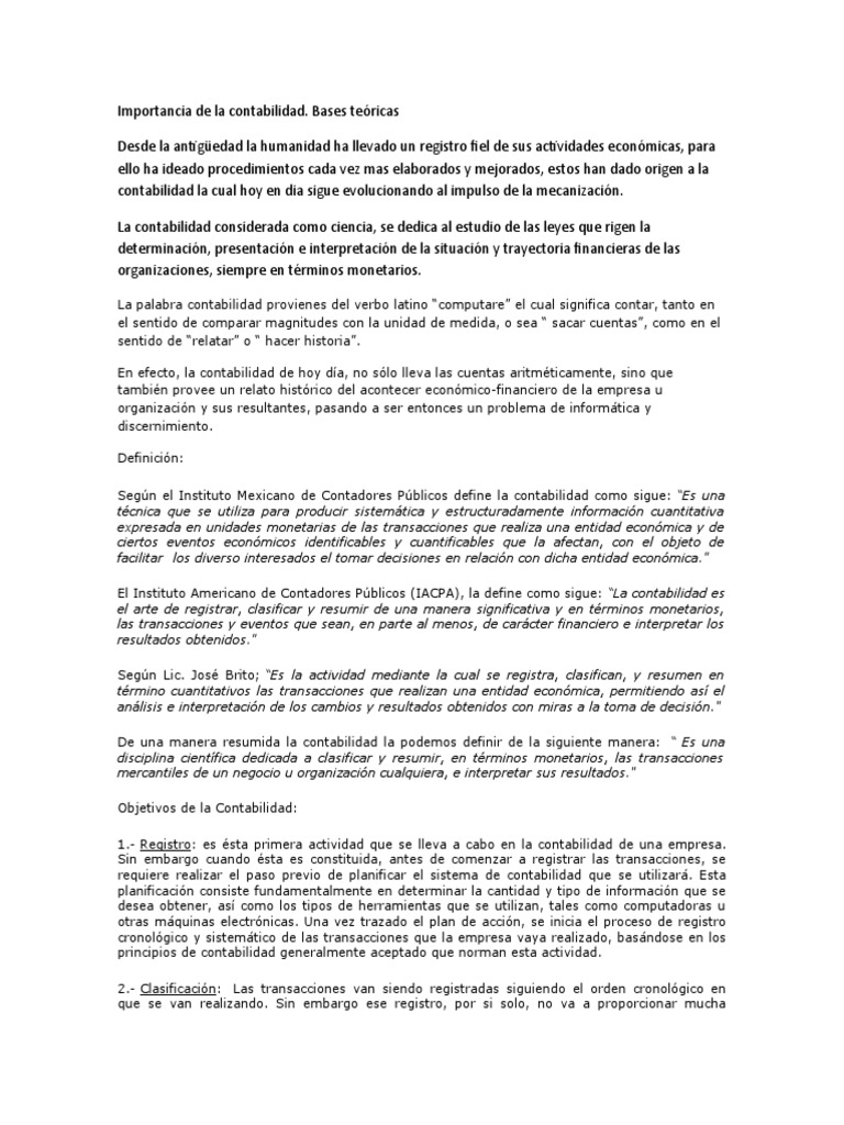 Desde la antigüedad la humanidad ha llevado un registro fiel de sus actividades económicas, para